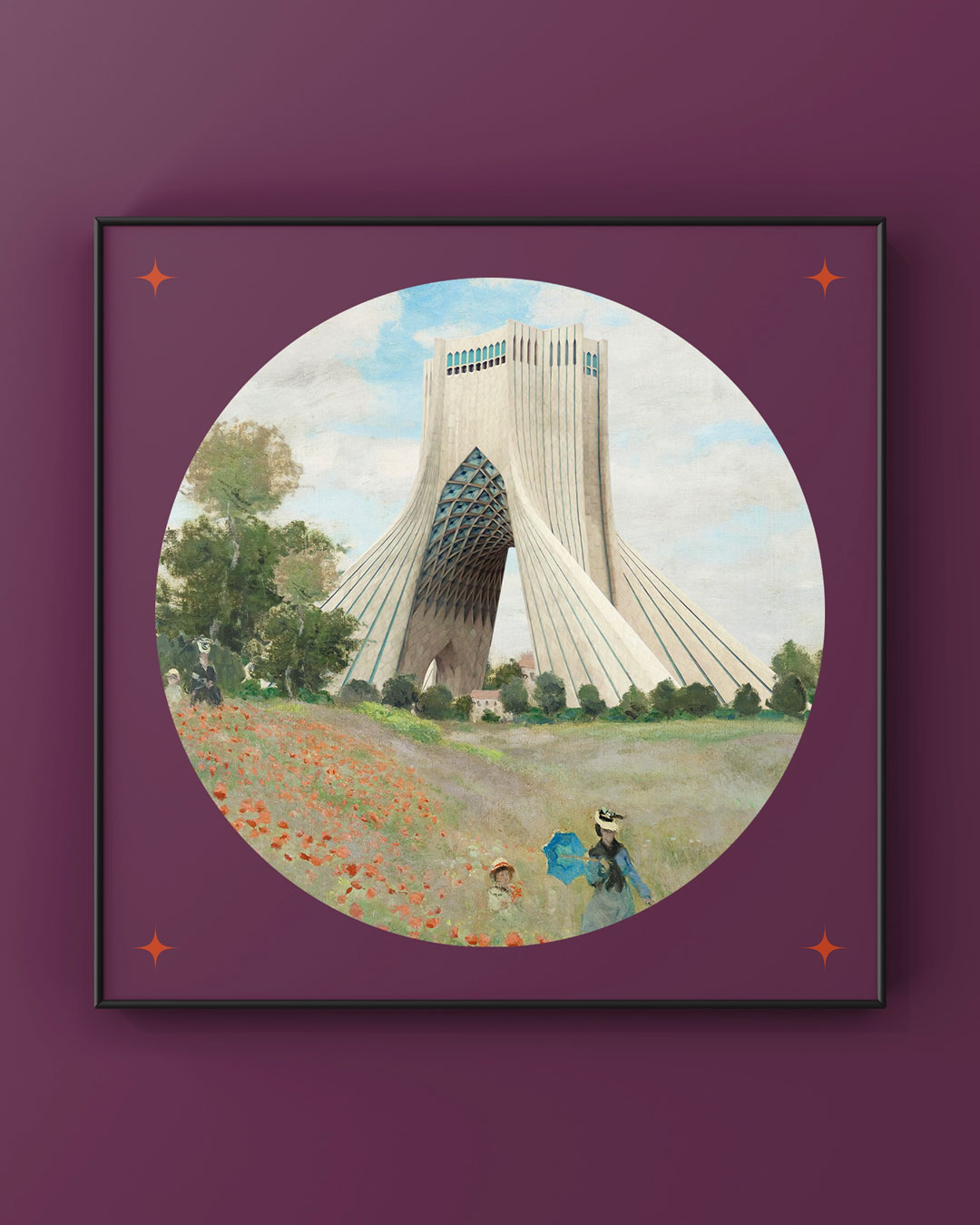 • کنار «درخت سرو» در گندم‌زار ون‌گوگ، که در فرهنگ ما نماد جاودانگی و آزادگی است، برج آزادی استوار ایستاده. این تصویر، پیوند عمیق میان پایداری یک ملت و رویایی است که با وجود تمام بادهای مخالف، همچون «سرو آزاد» ریشه‌دار و سر به فلک کشیده باقی می‌ماند.