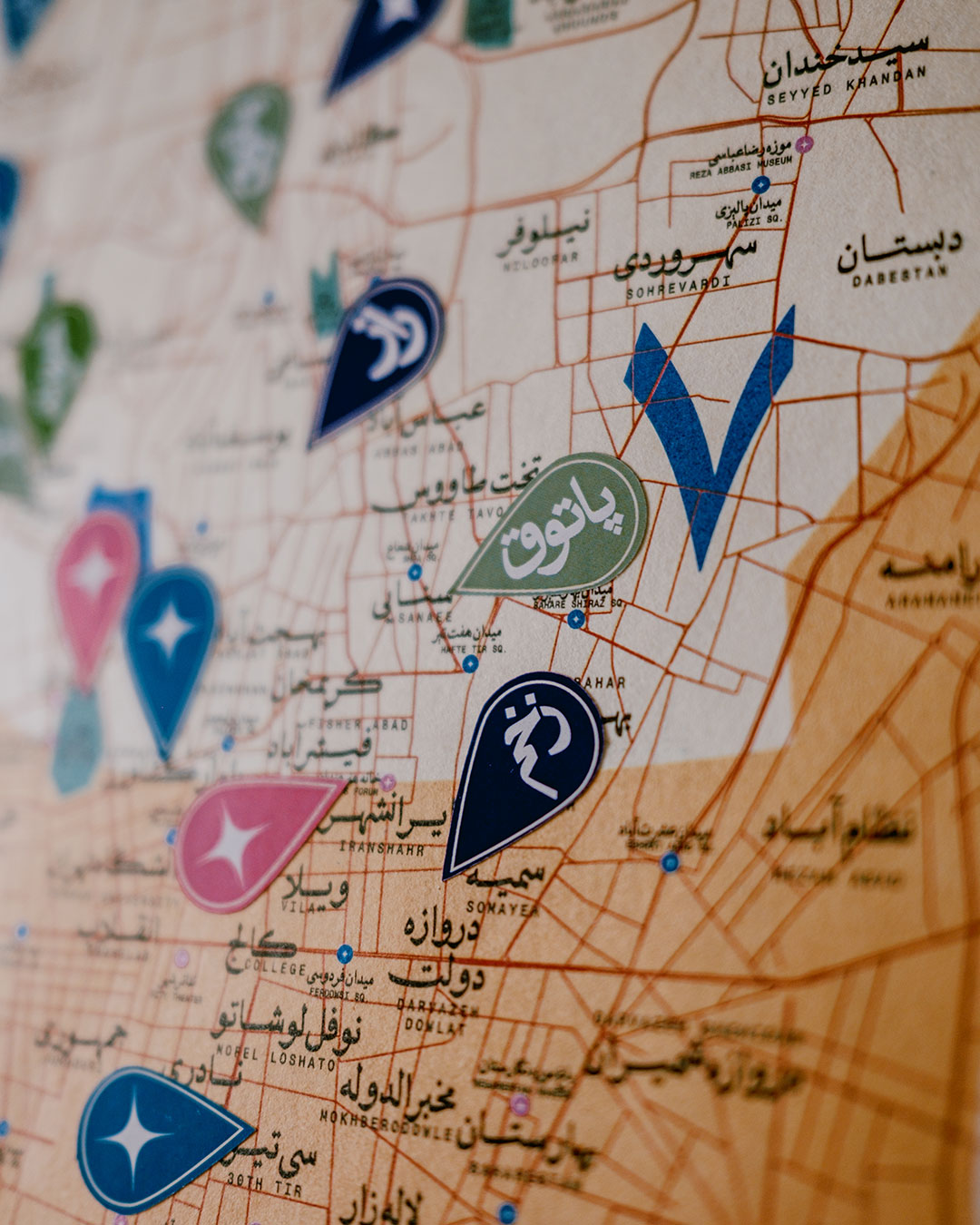 مجموعهای از نشانههای رنگین برای آنگه نقشه را به اثری کاملا شخصی بدل کنید؛ ابزاری برای روایت کردن خندهها، دلتنگیها، رازها، و تمام پاتوقهایی که تنها برای شما معنا دارند.