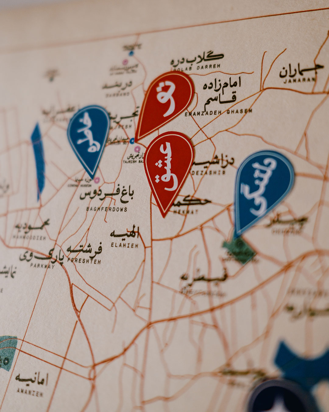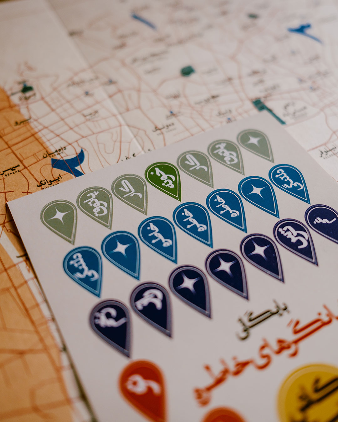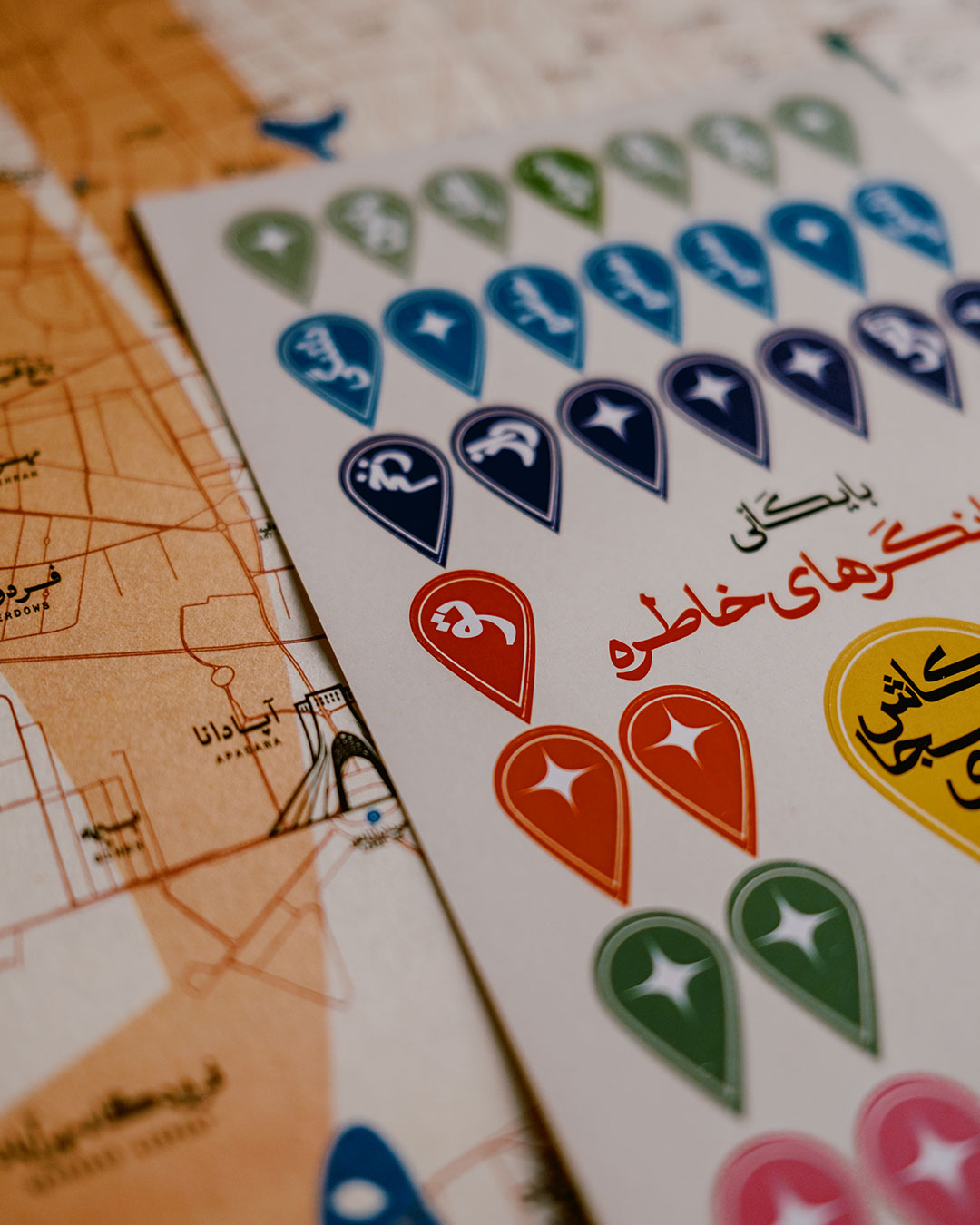 مجموعهای از نشانههای رنگین برای آنگه نقشه را به اثری کاملا شخصی بدل کنید؛ ابزاری برای روایت کردن خندهها، دلتنگیها، رازها، و تمام پاتوقهایی که تنها برای شما معنا دارند.